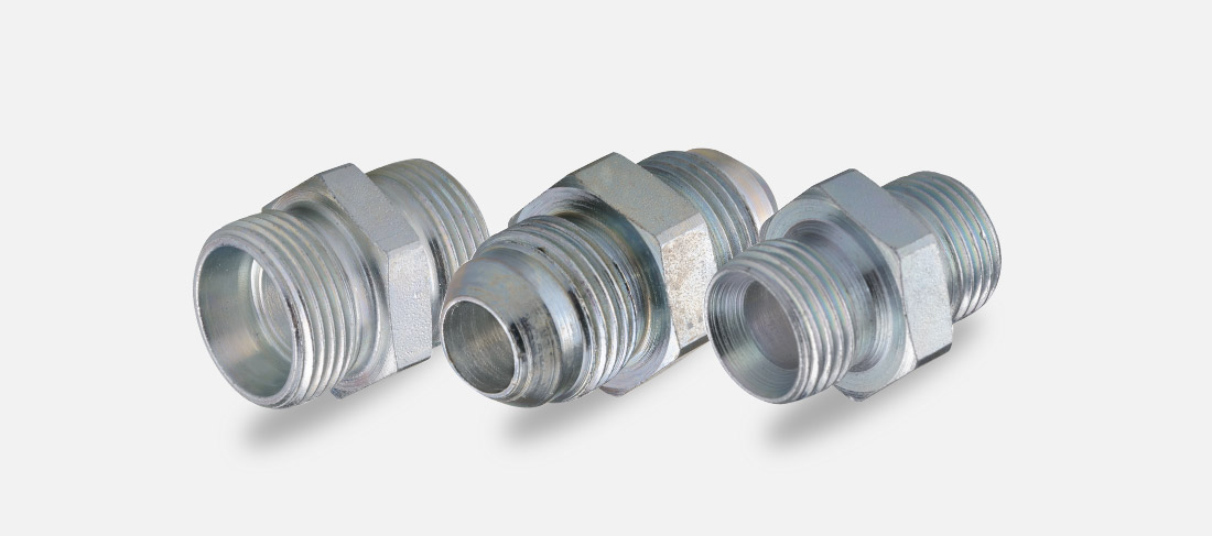 Rohrverschraubungen und Adapter zum Verbinden von Hydraulikschläuchen.